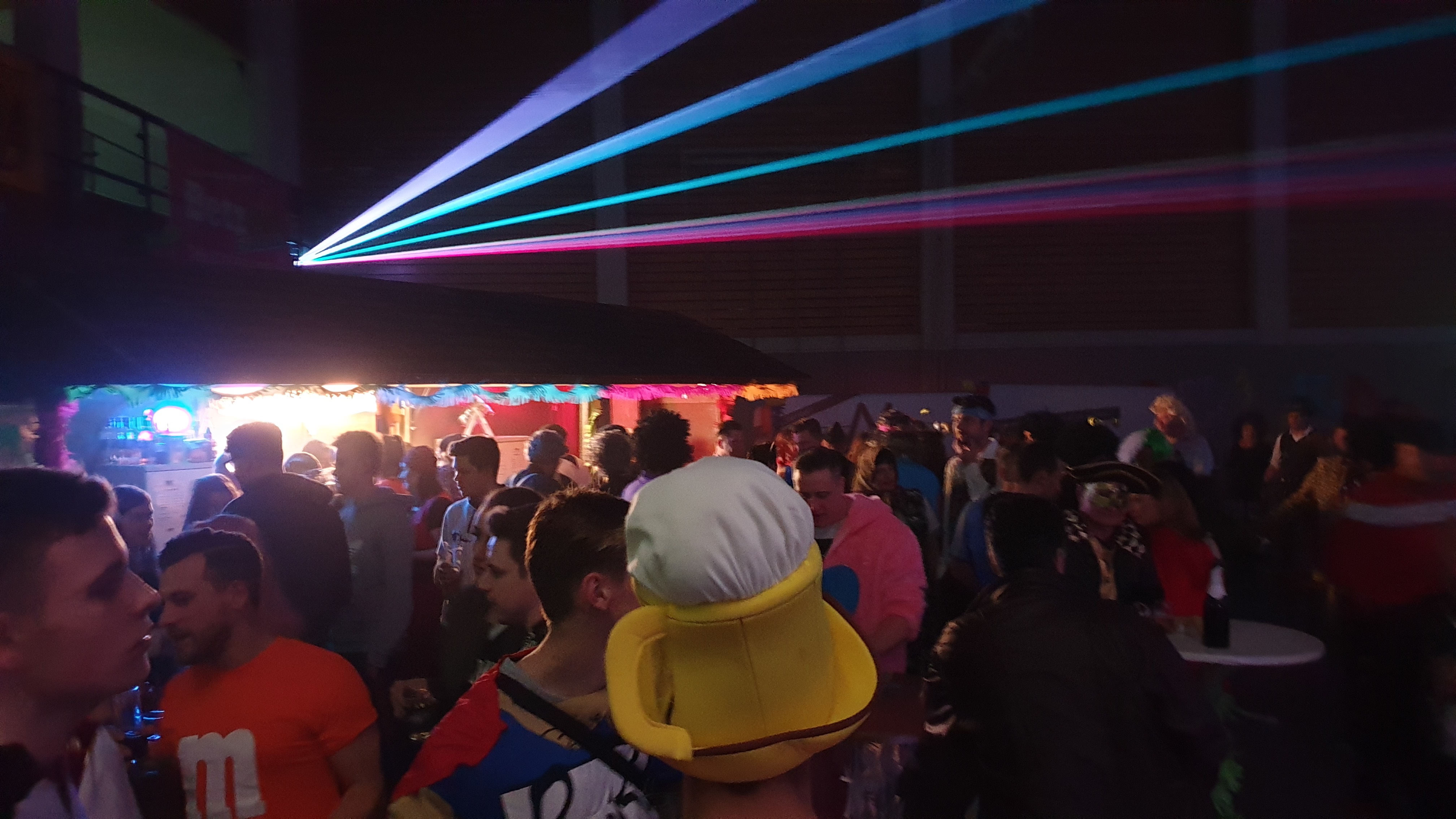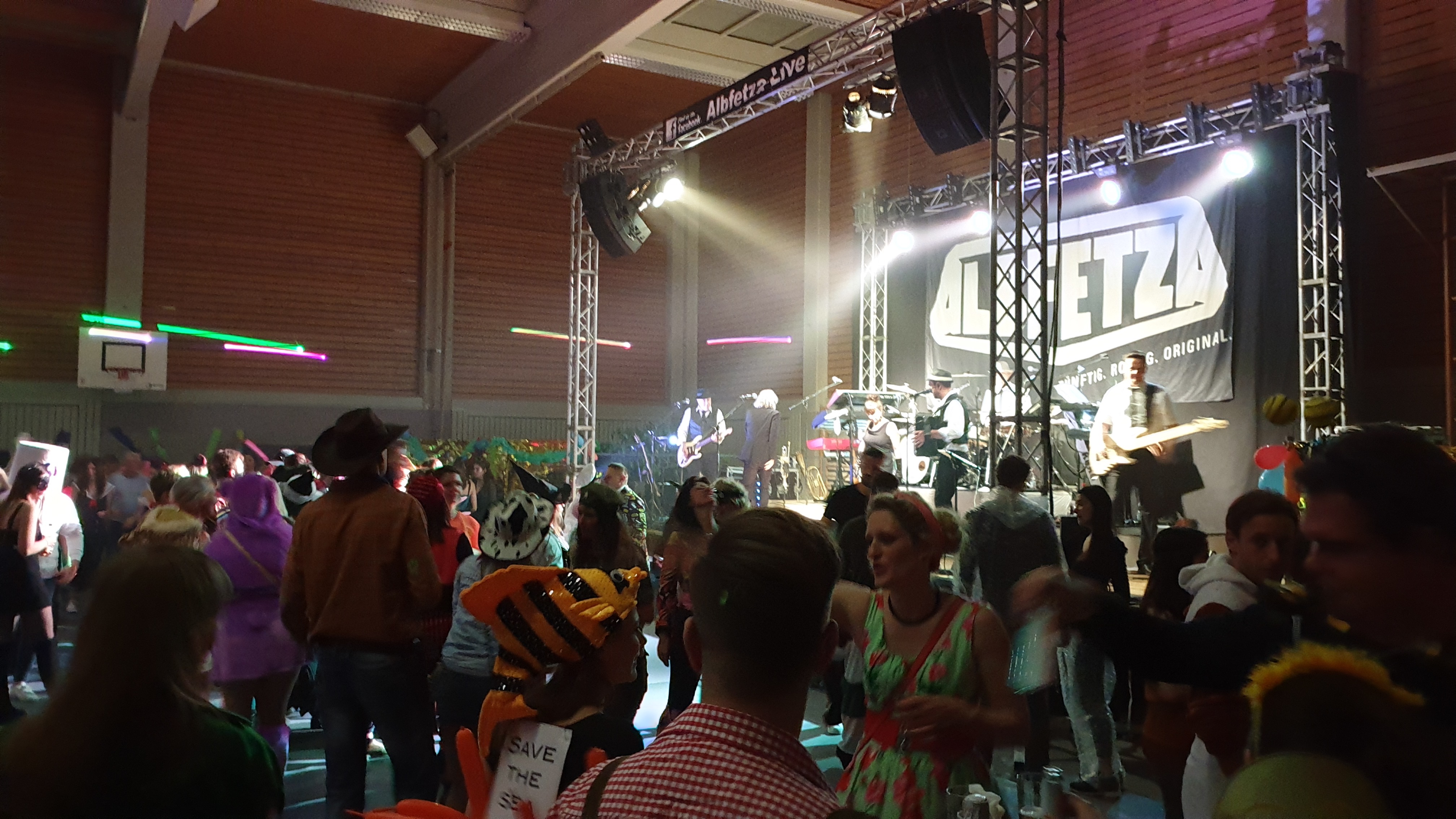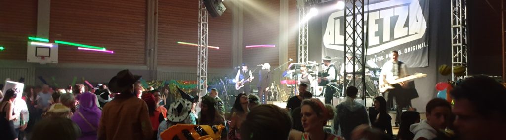 Für den zweiten Fasching nach neun Jahren Pause waren im Vorverkauf schon zahlreiche Karten verkauft worden und wir waren alle gespannt ob wir denn dieses Mal etwas mehr Besucher in der Wildeckhalle begrüße könnten als im vergangenen Jahr. Der Aufbau am Freitag und Samstag lief aufgrund der tatkräftigen Mithilfe von Vereinsmitgliedern und Mitarbeitern vom Ambiente sehr gut, so dass einer erfolgreichen Veranstaltung nichts mehr im Wege stand. Um 19.19 Uhr war die Öffnung der Wildeckhalle angesagt und zahlreiche Gäste fanden sich ein. Die Partyband „Albfetza“ eröffnete um 20.30 Uhr die Veranstaltung mit der ersten Tanzrunde. Die Stimmung war den ganzen Abend über sehr gut, die meisten Gäste kamen mit kreativen Kostümen und gaben dadurch der Veranstaltung auch das notwendige Flair. Die Tanzfläche war den ganzen Abend über gut gefüllt und alle tanzten ausgelassen und waren mit Freude dabei. Das Essenangebot in der Küche sowie die Getränkeausgabe und die Bar, welche wir in diesem Jahr das erste Mal in Form von Hütten gleich rechts neben dem Haupteingang aufgebaut hatten, wurde sehr gut angenommen. Auch das Bierrondell das in der Mitte der Halle platziert war, wurde gut frequentiert. Auch dieses Jahr hatten wir anstatt der bis 2009 verwendeten Girlanden welche in der Halle von der Decke abgehängt wurden, wieder eine Firma beauftragt die mit drei Lasern eine sogenannte Laserdecke im sicheren Abstand über die Besucher legte, welche optisch sehr gut rüberkam und den ganzen Abend über eine bunte „Decke“ über die Besucher legte. Die auch im letzten Jahr eingesetzte Security Firma arbeitete wieder sehr seriös und unaufgeregt, so dass es den ganzen Abend über zu keinem nennenswerten Zwischenfall kam, da die Stimmung zwar ausgelassen aber nicht aggressiv war. Nachdem die „Albfetza“ um 1.30 Uhr die letzte Tanzrunde beendet hatten, begannen die Techniker noch in der Nacht mit dem Abbau welcher um 4.30 Uhr beendet war. Die letzten Besucher verließen gegen 3.00 Uhr die Veranstaltung, und somit konnte die Security Firma ihre Arbeit beenden. Am Sonntagmorgen begann bereits um 9.30 Uhr der Abbau, da wir dieses Mal wieder Biertischgarnituren anstatt der Hallentische und Stühle verwendet hatten, konnte der Hallenwart bereits um 12.00 mit der Reinigung des wenig verschmutzten und „ungeliebten“ Schutzbodens beginnen. Da der Schutzboden nur so gering verschmutzt war reichte wieder ein Reinigungsvorgang, so dass wir bereits um 14.00 Uhr mit dem Aufrollen des Schutzbodens beginnen konnten, gegen 16.00 Uhr war das Aufrollen dann beendet. Aus unserer Sicht ist der Schutzboden unnötig und war ursprünglich ja auch nur wegen dem damals noch in Gebäuden erlaubten Rauchens und den dadurch entstehenden Brandflecken durch weggeworfene brennende Zigaretten angeschafft worden. Wir bedanken uns bei allen Helfern die zum Gelingen dieser Veranstaltung beigetragen haben recht herzlich. Unser besonderer Dank gilt unseren Partnern dieser Veranstaltung der Bier- und Weinstube Ambiente und der Weinkellerei Wangler und allen anderen Sponsoren ohne die diese Veranstaltung nicht möglich gewesen wäre. Unser ganz besonderer Dank gilt dem Hausmeister Herr Müller der uns die gesamte Veranstaltung über sehr gut unterstützt hat. Aufgrund der besseren Besucher Anzahl als im letzten Jahr, haben wir bereits für das 2020 wieder die „Albfetza“ verpflichtet. Wir bedanken uns bei unseren tollen Gästen für ihren Besuch beim Abstatter Fasching und hoffen auf ein Wiedersehen im nächsten Jahr!