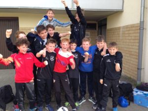 Gleich mit fünf Absagen hatte die D1 zu kämpfen, so dass gerade mal sieben etatmäßige D1-Junioren zur Verfügung standen. Mit Manu und Flo von der D2 halfen zwei Jungs aus, so dass die Mannschaft immerhin komplett antreten konnte. Der Gegner – die TSG Heilbronn – besiegte am letzten Spieltag den SC Amorbach mit 5:1, somit waren die Erwartungen nicht allzu hoch. Doch die Jungs wuchsen über sich hinaus. Zwar musste die Mannschaft schon nach 10 Minuten das 0:1 hinnehmen, doch nur sechs Minuten später konnte Phillip T ausgleichen. Danach hielten die Jungs um Kapitän Fabian M. die Begegnung nicht nur offen, sondern hatten in Halbzeit zwei durchaus die Chancen, die Partie für sich zu entscheiden. So blieb es letztendlich beim 1:1. Die völlig ausgepumpten Jungs wurden von den mitgereisten begeisterten Eltern mit Standing Ovation gefeiert.